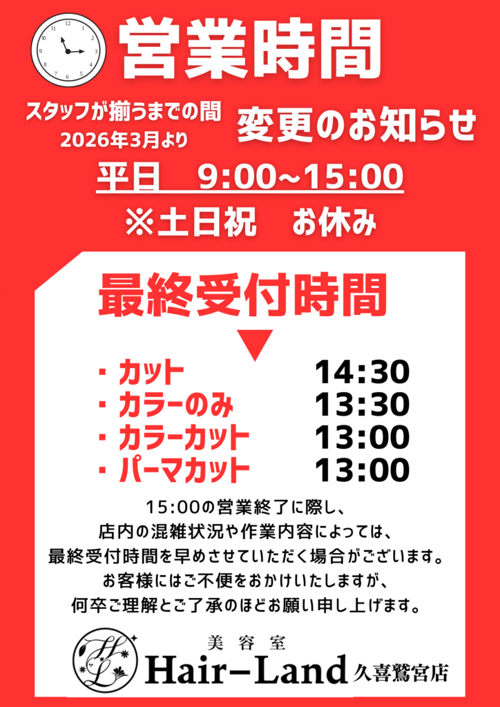 久喜鷲宮店 店舗紹介 ヘアーランド美容室
