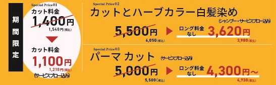| ・カラーカット | 15:00まで |